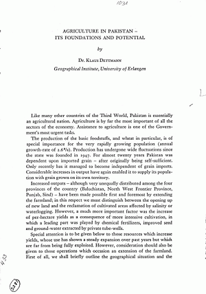 Agriculture in Pakistan - Its foundations and potential.