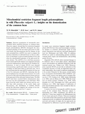 Mitochondrial restriction fragment length polymorphisms in wild Phaseolus vulgaris L.: Insights on the domestication on the common bean