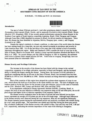 Spread of Tan spot in the Southern Cone region of South America
