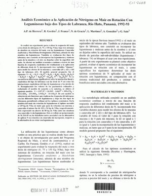 Analisis economico a la aplicacion de nitrogeno en maiz en rotacion con leguminosas bajo dos tipos de labranza, Rio Hato, Panama, 1992-93