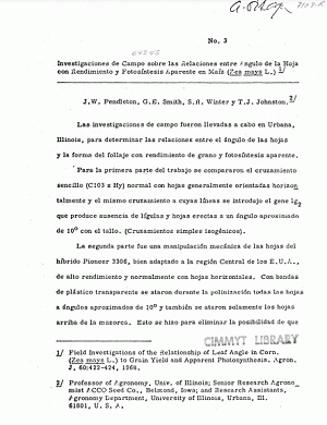 Investigaciones de campo sobre las relaciones entre angulo de la hoja con rendimiento y fotosintesis aparente en maiz (Zea mays L.)
