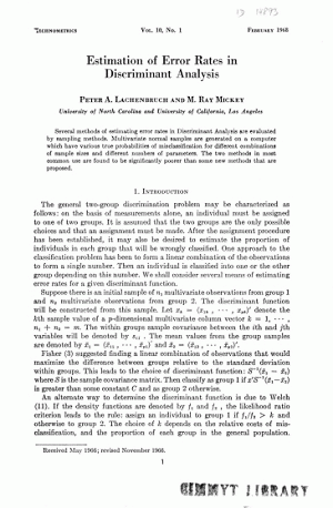 Estimation of error rates in discriminant analysis