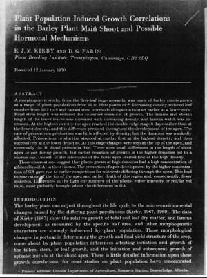Plant Population induced growth correlations in the barley plant main shoot and possible homonal mechanisms