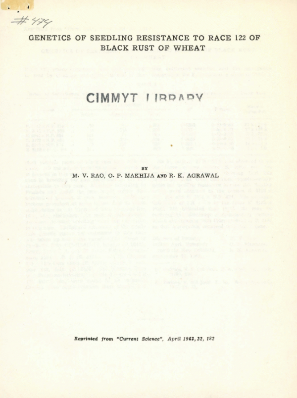 Genetics of seedling resistance to race 122 of black rust of wheat