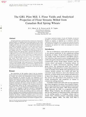 The GRL pilot mill. I. Flour yields and analytical properties of flour streams milled from canadian red spring wheats