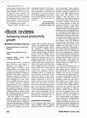 Achieving future productivity growth : farming systems of Pakistan : Diagnosing priorities for agricultural research edited by Derek Byerlee and Tariq Hussin Vanguard Books, Lahore, 1992, x+327 pp, Rs 395.00