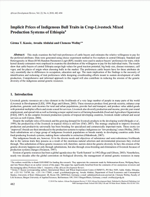 Implicit prices of indigenous bull traits in crop-livestock mixed production systems of Ethiopia