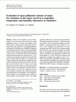 Evaluation of open pollinated varieties of maize for resistance to the maize weevil in a controlled temperature and humidity laboratory in Zimbabwe