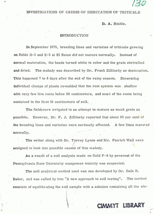Investigations of causes of desiccation of triticale.