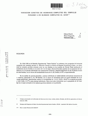Variacion genetica de hermanos completos del complejo peruano 5 en bloques completos al azar