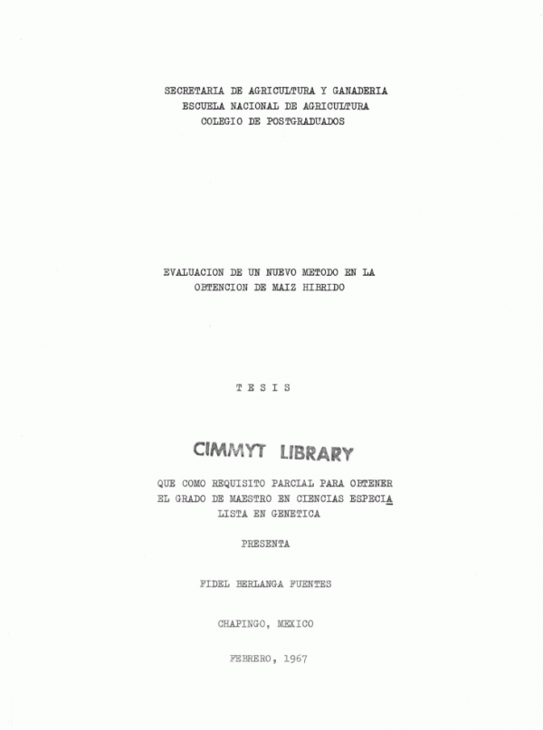 Evaluacion de un nuevo metodo en la obtencion de maiz hibrido