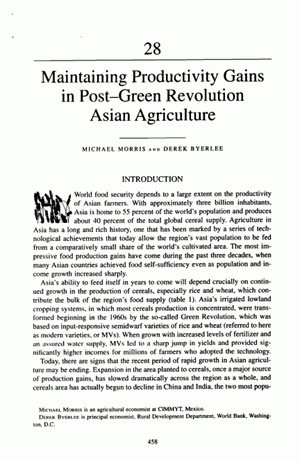 Maintaining productivity gains in post-green revolution Asian agriculture