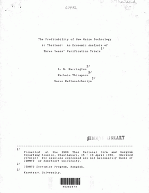 The profitability of new maize technology in Thailand: An economic analysis of three years' verification trials
