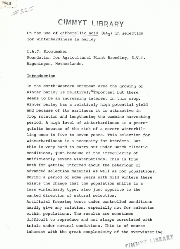 On the use of gibberellic acid (GA3) in selection for winter hardiness in barley
