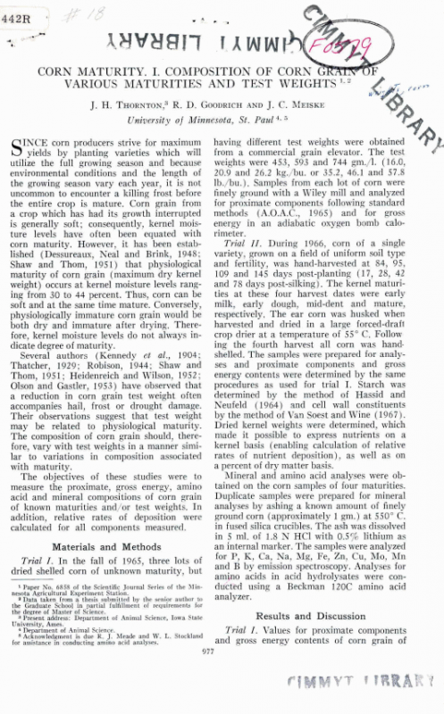 Corn maturity: I. composition of corn grain of various maturities and test weights