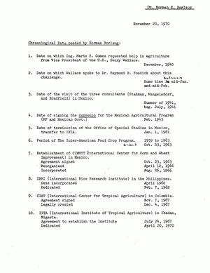 Beginnings CIMMYT: Chronological data needed by Norman Borlaug