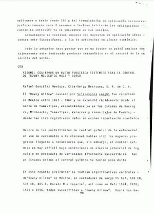 Ridomil CGA-48988 un nuevo fungicida sistémico para el control de "Downy Mildew" de maíz y sorgo