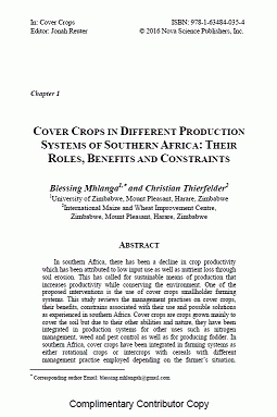 Chapter 1. Cover crops in different production systems of Southern Africa : Their roles, benefits and constraints.