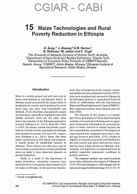 Zeng D, Alwanga J, Shiferaw B, Yirga C, Debello M.J and Norton G.W. Chapter 15. Maize Technologies and Rural Poverty Reduction in Ethiopia. Boston, MA: CGIAR ; CAB International. 2015.