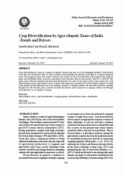 Indian Journal of Economics and Development Ludhiana (India) : Society of Economics and Development, 2016. v. 12, no. 1, p. 123-131Summary: Crop diversification is seen as a means to improve income and also as a risk mitigating strategy. level data of 318 districts from 16 states of India, and classifying the districts according to 12 a gUros-inecgo dloisgtirciactl Iznodneexs aanndd Hirerrigfiantdioahnl tiynpdeesx, tthoi sp rpeaspenetr aegxraimcuinlteusr atlh ed ipveartsteifrinc aotifo cnr obpet wdeiveenr stihfeic apteiroino dasn 1d9 c6o6m-6p7u ttoes 2t0h0e7 -S0im8.p Tsohne dpiavpeerrs ifsihcaotwiosn t haactr otshse adgermo-acnlidm asitdice -zpounsehs ainn dIn udriab.a nTihzea tpioanp ear rpeo ssoesm qe uoefs ttihoen sm foarjo nre feadc toofr fsu ttuhraet aenxpallaysinis tthoe cchreocpk itfh othuigsh pt aottveerrn thofe dbirvoearsdiefirc aptoiolinc yc asnc ebnea raino atod ampatikvee tmheea fsaurrme etros mmaonraeg ree cspliomnastiev er itsok manadn awghea tc lsihmoautled rbisek ctahrreofuugllhy diversification as an adaptive strategy.