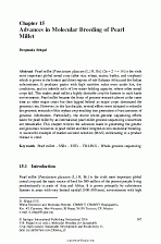 Subject(s): Online resources: In: Molecular breeding for sustainable crop improvement : volume 2 New York, USA : Springer Berlin Heidelberg, 2016. p. 397-419Summary: Pearl millet [Pennisetum glaucum (L.) R. Br.] (2n = 2 × = 14) is the sixth most important global cereal crop (after rice, wheat, maize, barley, and sorghum) which is grown in the hottest and driest regions of sub-Saharan Africa and the Indian subcontinent. It produces grains with high nutritive value even under hot, dry conditions, and on infertile soils of low water-holding capacity, where other cereal crops fail. This makes pearl millet a highly desirable crop for farmers in such harsh environments. Pearl millet became the focus of genome research almost at the same time as other major crops but then lagged behind as major crops dominated the genomics era. However, in the last decade, several efforts were initiated to rekindle the genomic research of this orphan crop resulting into generation of vast amounts of genomic information. Particularly, the recent whole-genome sequencing efforts taken for pearl millet by an international pearl millet genome sequencing consortium are remarkable. This chapter reviews the advances made in generating the genetic and genomics resources in pearl millet and their integration into molecular breeding. A successful example of marker-assisted selection (MAS) culminating in a product release is cited.