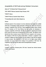 GM Crops & Food v. 7, no. 2, p. 117–124Summary: In Pakistan majority of the consumers do not have information about genetically modified (GM) foods. In developing countries particularly in Pakistan few studies have focused on consumers' acceptability about GM foods. Using comprehensive primary dataset collected from 320 consumers in 2013 from Pakistan, this study analyzes the determinants of consumers' acceptability of GM foods. The data was analyzed by employing the bivariate probit model and censored least absolute deviation (CLAD) models. The empirical results indicated that urban consumers are more aware of GM foods compared to rural consumers. The acceptance of GM foods was more among females' consumers as compared to male consumers. In addition, the older consumers were more willing to accept GM food compared to young consumers. The acceptability of GM foods was also higher among wealthier households. Low price is the key factor leading to the acceptability of GM foods. The acceptability of the GM foods also reduces the risks among Pakistani consumers.