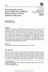 Fragile states constitute a challenging operating environment. Yet, the role of development partner engagement on issues of social inclusion, identity politics, or horizontal inequalities in such fragile environments has not received the attention these complex issues warrant. The attitudes of development actors, their level of commitment, bias, risk management, and understanding of the political settlement can have a real bearing on the effectiveness of such efforts to promote inclusion. In Nepal, certain development partners have faced elite backlash for their engagement on social inclusion, while others have been more successful. This article asks what lessons can be learned from these experiences for those interested in promoting social inclusion in fragile states through development assistance.