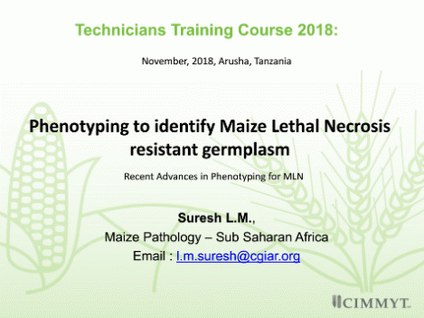 Presented at Technicians Training Course 2018: Phenotyping to identify Maize Lethal Necrosis resistant germplasm November, 2018, Arusha, Tanzania