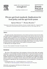 This paper provides a brief introduction to the evolution and nature of private food safety and quality standards, highlighting the resultant impacts on the structure and modus operandi of supply chains for agricultural and food products and the challenges posed for processes of agricultural development. It serves as an introduction to a series of papers that provide a comprehensive overview of the current state of knowledge regarding private food safety and quality standards in both an industrialised and developing country context. In so doing, it aims to provide a catalyst for further research on this rapidly evolving field of inquiry.