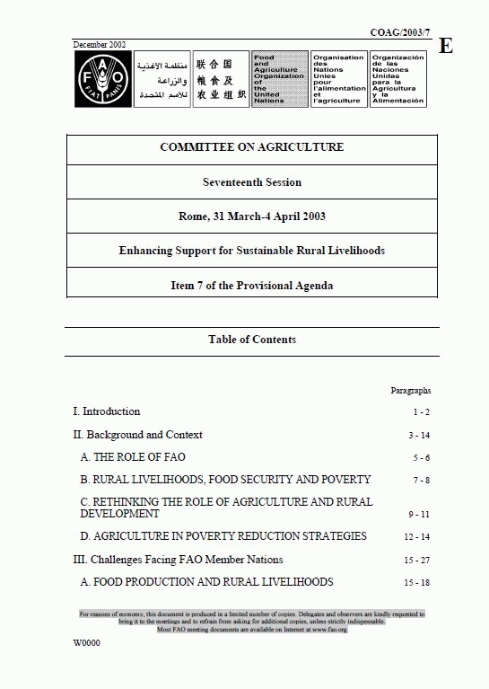 Committee on Agriculture, Seventeenth Session. Rome, 31 March-4 April 2003.