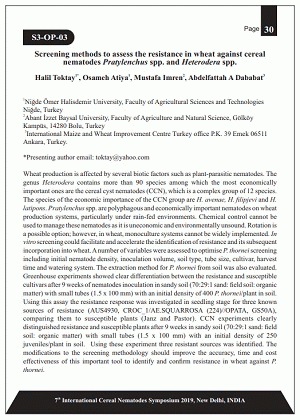 Toktay H, Atiya O, Imren M, Dababat A.A and International Cereal Nematodes Symposium. 2019. Screening methods to assess the resistance in wheat against cereal nematodes Pratylenchus spp. and Heterodera spp. New Delhi (India): National Academy of Agricultural Sciences.