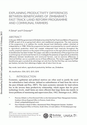 Explaining productivity differences between beneficiaries of Zimbabwe's Fast Track Land Reform Programme and communal farmers
