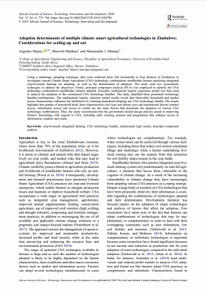 Adoption determinants of multiple climate smart agricultural technologies in Zimbabwe : considerations for scaling-up and out