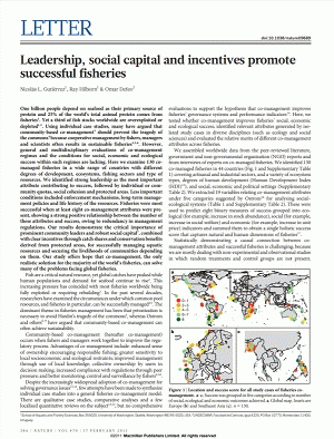 One billion people depend on seafood as their primary source of protein and 25% of the world’s total animal protein comes from fisheries1. Yet a third of fish stocks worldwide are overexploited or depleted1,2. Using individual case studies, many have argued that community-based co-management3 should prevent the tragedy of the commons4 because cooperative management by fishers, managers and scientists often results in sustainable fisheries3,5,6. However, general and multidisciplinary evaluations of co-management regimes and the conditions for social, economic and ecological success within such regimes are lacking. Here we examine 130 co-managed fisheries in a wide range of countries with different degrees of development, ecosystems, fishing sectors and type of resources. We identified strong leadership as the most important attribute contributing to success, followed by individual or community quotas, social cohesion and protected areas. Less important conditions included enforcement mechanisms, long-term management policies and life history of the resources. Fisheries were most successful when at least eight co-management attributes were present, showing a strong positive relationship between the number of these attributes and success, owing to redundancy in management regulations. Our results demonstrate the critical importance of prominent community leaders and robust social capital7, combined with clear incentives through catch shares and conservation benefits derived from protected areas, for successfully managing aquatic resources and securing the livelihoods of communities depending on them. Our study offers hope that co-management, the only realistic solution for the majority of the world’s fisheries, can solve many of the problems facing global fisheries.