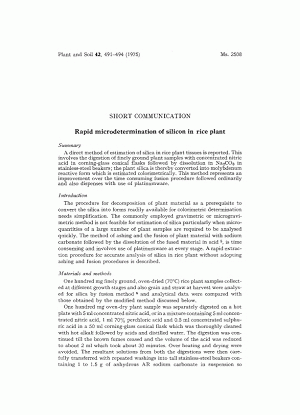 Rapid microdetermination of silicon in rice plant