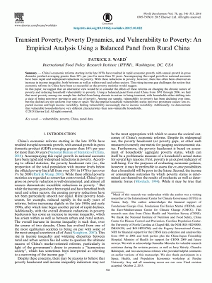 Transient poverty, poverty dynamics, and vulnerability to poverty : an empirical analysis using a balanced panel from rural China