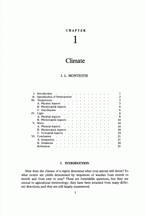 Monteith J.L, . 1977. Chapter 1. Climate. New York (USA): Academic Press.
