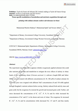 Tissue-specific modulation of metabolism and nutrients acquisition through seed priming with sodium selenate confers salt tolerance in wheat