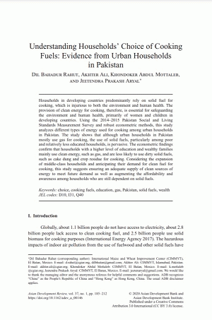 Understanding households’ choice of cooking fuels : evidence from urban households in Pakistan