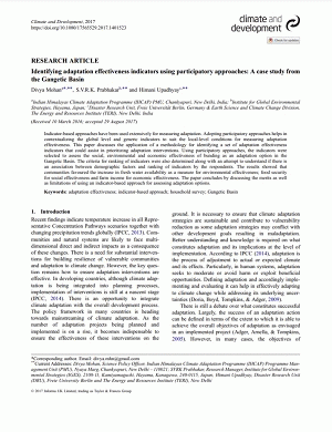 Identifying adaptation effectiveness indicators using participatory approaches : a case study from the Gangetic Basin
