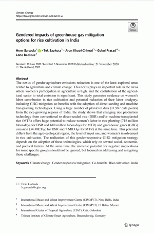 Gendered impacts of greenhouse gas mitigation options for rice cultivation in India
