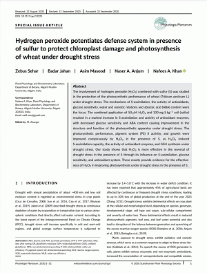 Hydrogen peroxide potentiates defense system in presence of sulfur to protect chloroplast damage and photosynthesis of wheat under drought stress
