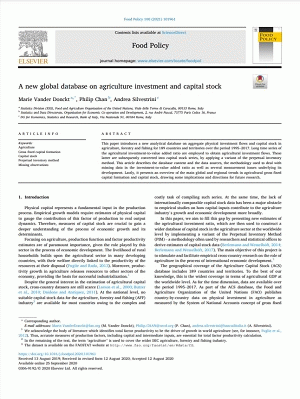 This paper introduces a new analytical database on aggregate physical investment flows and capital stock in agriculture, forestry and fishing for 189 countries and territories over the period 1995–2017. Long time series of the agricultural investment-to-value added ratio are employed to obtain agricultural investment flows. These latter are subsequently converted into capital stock series, by applying a variant of the perpetual inventory method. This article describes the database content and the data sources, the methodology used to deal with missing data in the investment-to-value added ratio as well as several measurement issues underlying its development. Lastly, it presents an overview of the main global and regional trends in agricultural gross fixed capital formation and capital stock, drawing some implications and directions for future research.