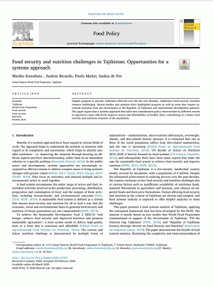 Despite progress in poverty reduction achieved over the last two decades, Tajikistan’s food security situation remains challenging. Recent studies and analyses have highlighted progress as well as areas that require increased attention from the Government of the Republic of Tajikistan and international development partners. The paper argues that a systems approach that takes into consideration policy interventions by different sectors is required to more effectively improve access and affordability of healthy diets, contributing to a better food security and nutrition situation of the population.