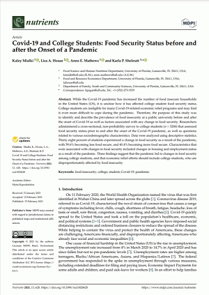 Covid-19 and college students : food security status before and after the onset of a pandemic