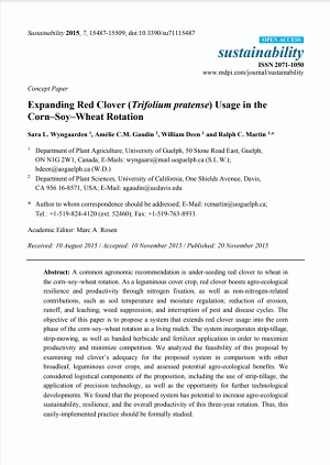 Expanding red clover (Trifolium pratense) usage in the corn–soy–wheat rotation