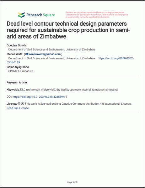 Dead level contour technical design parameters required for sustainable crop production in semiarid areas of Zimbabwe