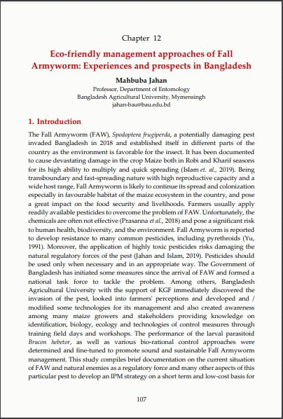 Chapter 12. Eco-friendly management approaches of Fall Armyworm : Experiences and prospects in Bangladesh