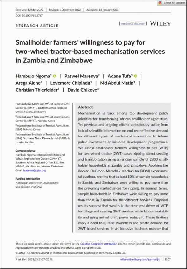 Smallholder farmers' willingness to pay for two-wheel tractor-based mechanisation services in Zambia and Zimbabwe