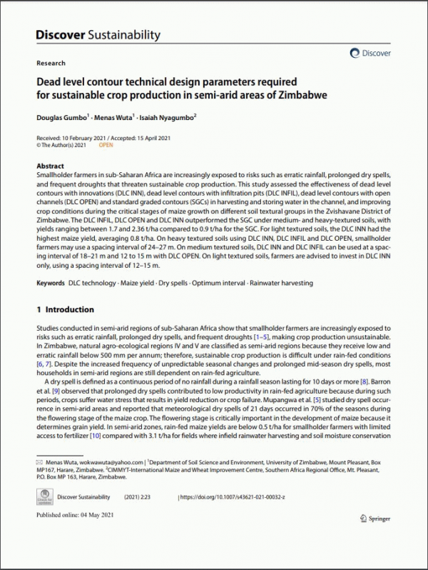 Dead level contour technical design parameters required for sustainable crop production in semi-arid areas of Zimbabwe